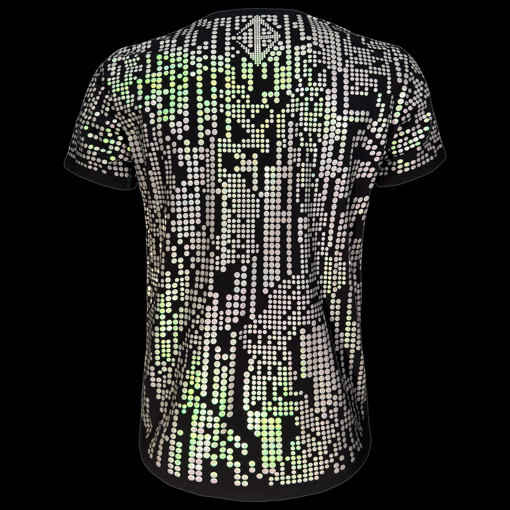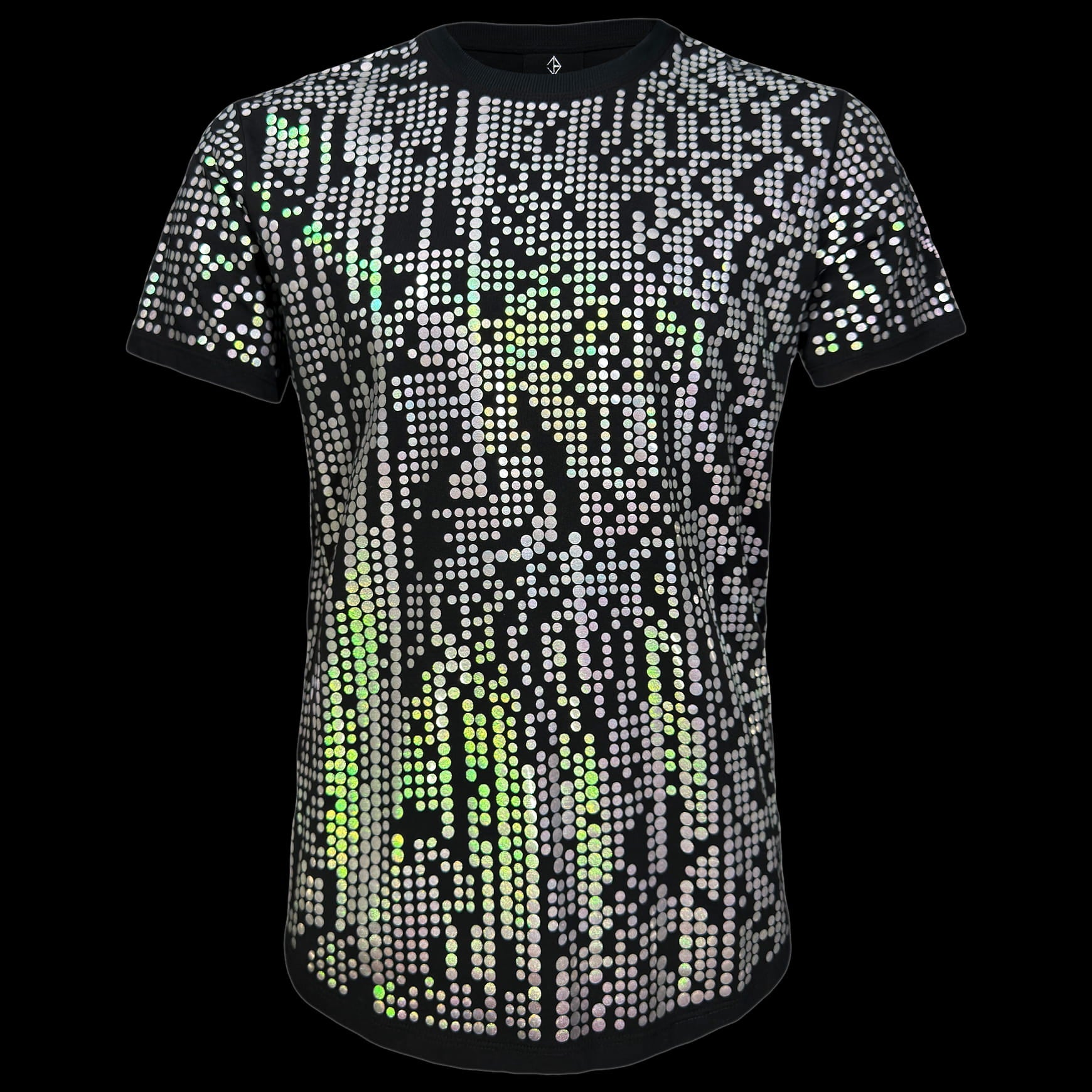 Designed and constructed in-house, this tee is cut, sewn, and finished by hand in New York City. The curved bottom hem creates a futuristic silhouette that feels intentional yet wearable, designed to stand out in low light and high-energy environments.